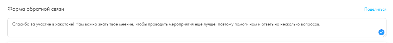 Редактор анкеты обратной связи работает аналогично редактору анкеты участника. Вы можете менять очередность вопросов, их тип, название вопроса и т.д.