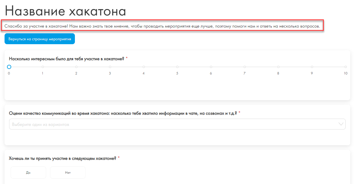 Перейдите в режим редактирования мероприятия и нажмите кнопку Анкета обратной связи.